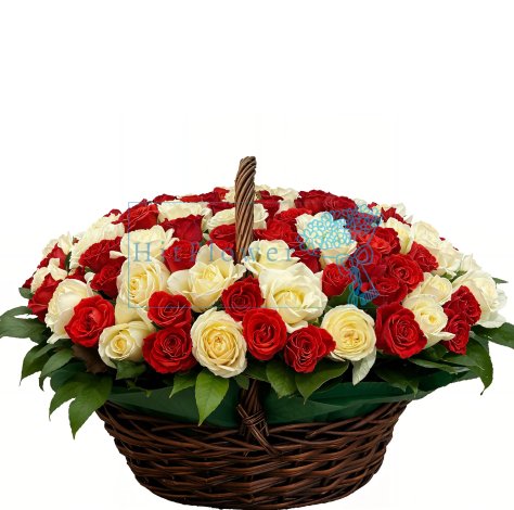 Композиция 101 роза в корзине